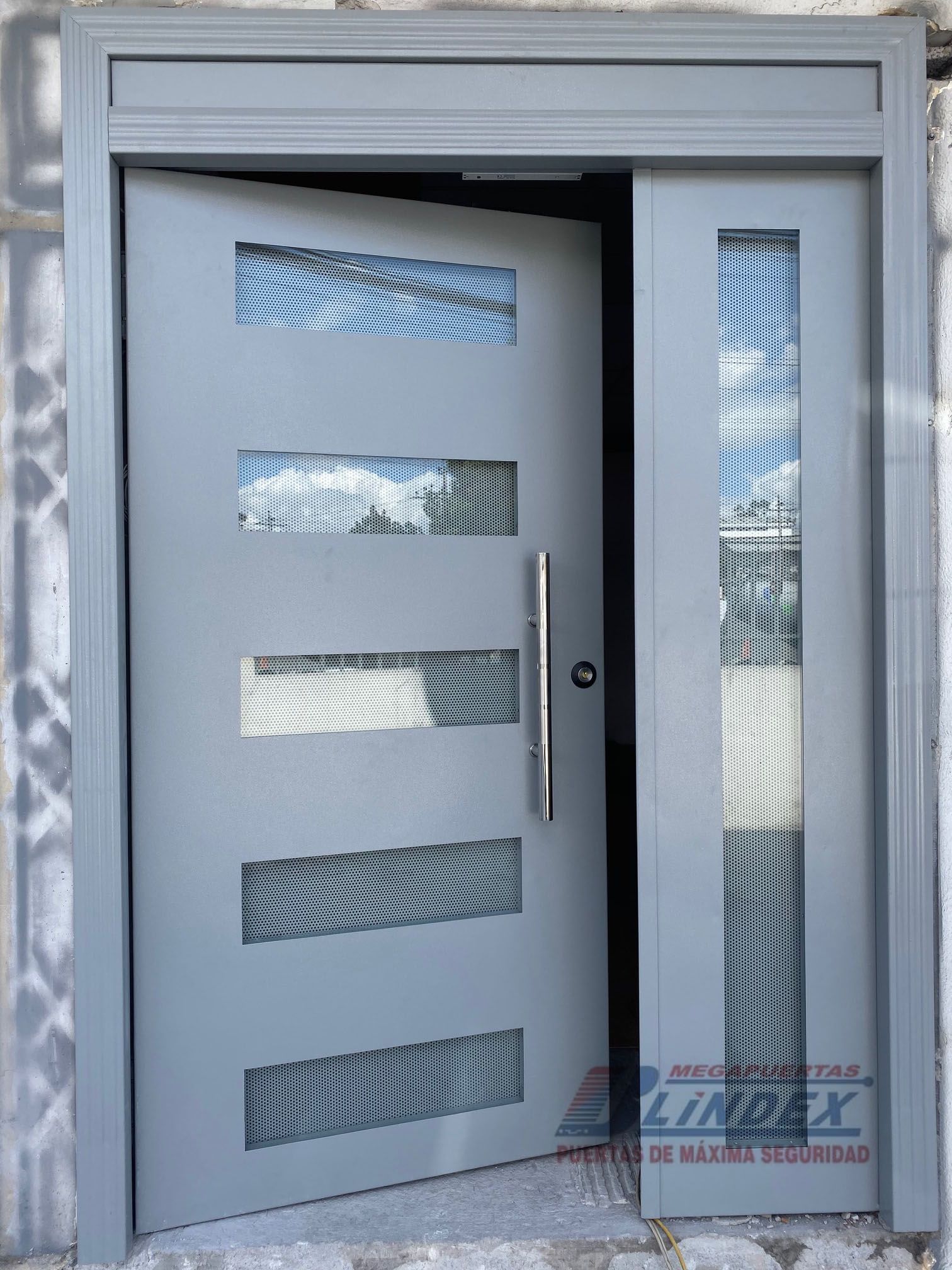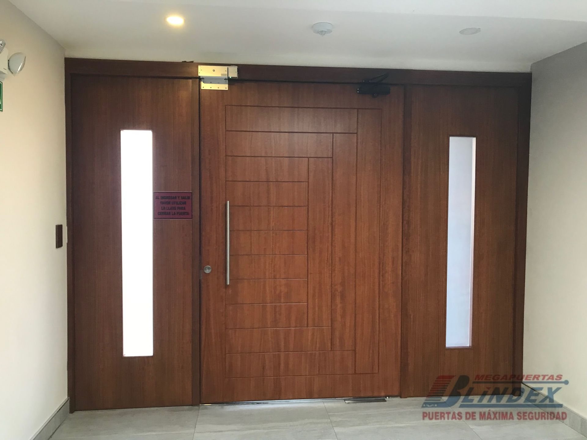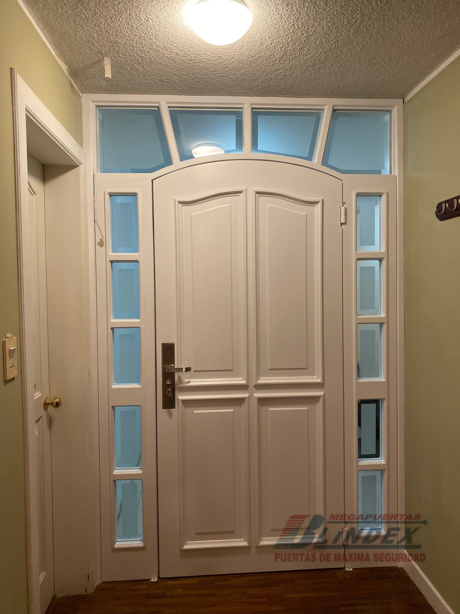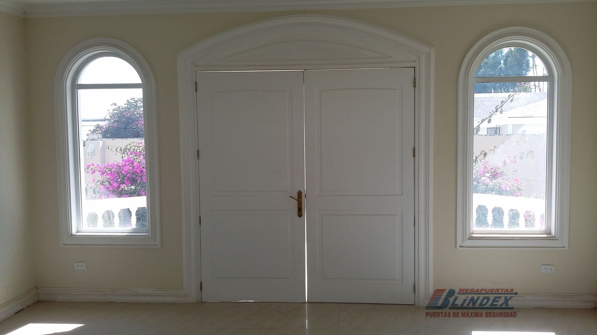 Residencias, comercios, bancos, cuartos de pánico, marcos y hoja en plancha galvanizada con refuerzos anti palanca, omegas internos tipo panal, relleno de lana de roca, cerradura española con 10 puntos de anclaje y enchape en madera.